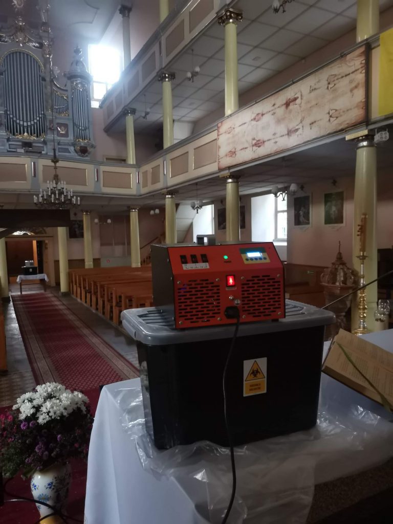 W ostatnich dniach wykonaliśmy ozonowanie i zamgławianie kościoła w celu zmniejszenia ryzyka zakażeniem koronawirusem.